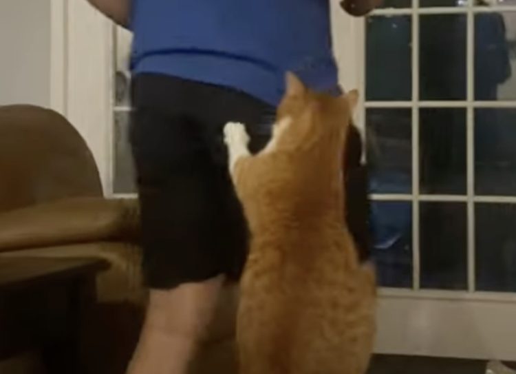 いきなりどうした?飼い主のお尻をぺチッと猫パンチ!