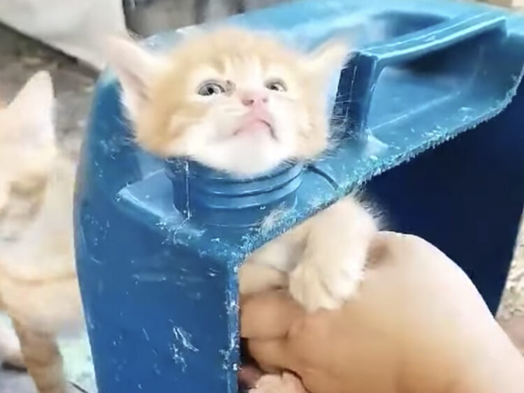 子猫がポリタンクの中に入り込んで、 頭しか出せなくて鳴いている!! 子どもからそんな連絡を受けた撮影者さん。 様子を見にいくと、子猫の首は 容器の入り口に引っかかって 押しても引いても全く動かない!! 大人2人でアレコレ試してみるけれど どうし... -