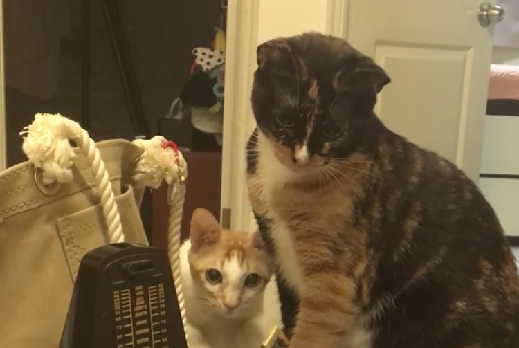 ねこの目の前に、メトロノームが! なかなか出会わない相手に、ねこは困惑しっぱなし。 カチッ...カチッ..というリズムに合わせて、ビクッ...ビクッ... テクニカルなダンスにも見えるような動きで、 近づこうとするもなかなか...。 勇気がある猫さんなので... -