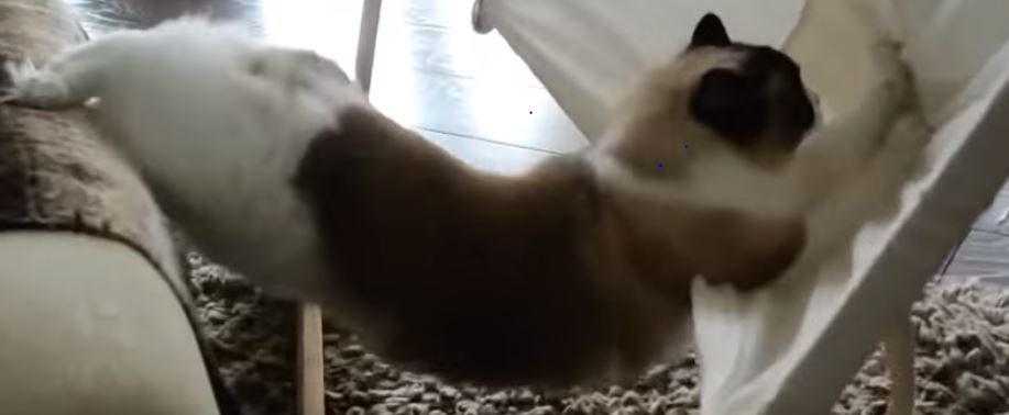 あきらめずに何度もトライ!ハンモックに乗りたい猫。