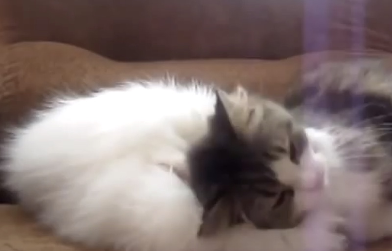 うさぎのモフモフが気に入りすぎたねこ、高速スリスリする。