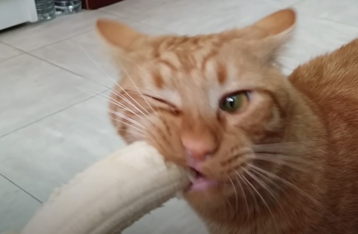 バナナが大好きな猫さん、夢中で食べるけどなぜか全然減らない!