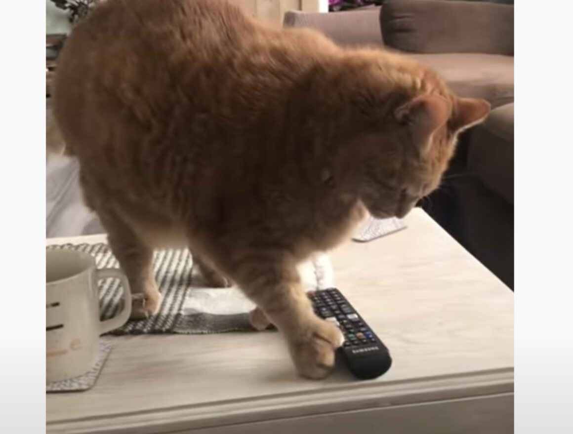 体の大きなオレンジ色の猫さん。 テレビを見ている飼い主さんの元へ。 テーブルの上に登って何か言いたそうにしています。 猫さんはしばらくすると テーブルの上に置いてあった リモコンに手を置いてかけて チョイ、チョイ、と落とす仕草をするのです。 退... -