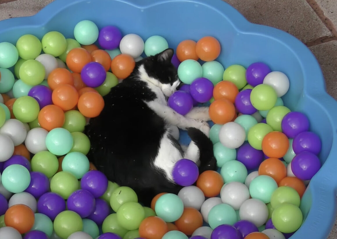 ゴロゴロたまらん♪ ボールプールに喜ぶ猫ちゃん。