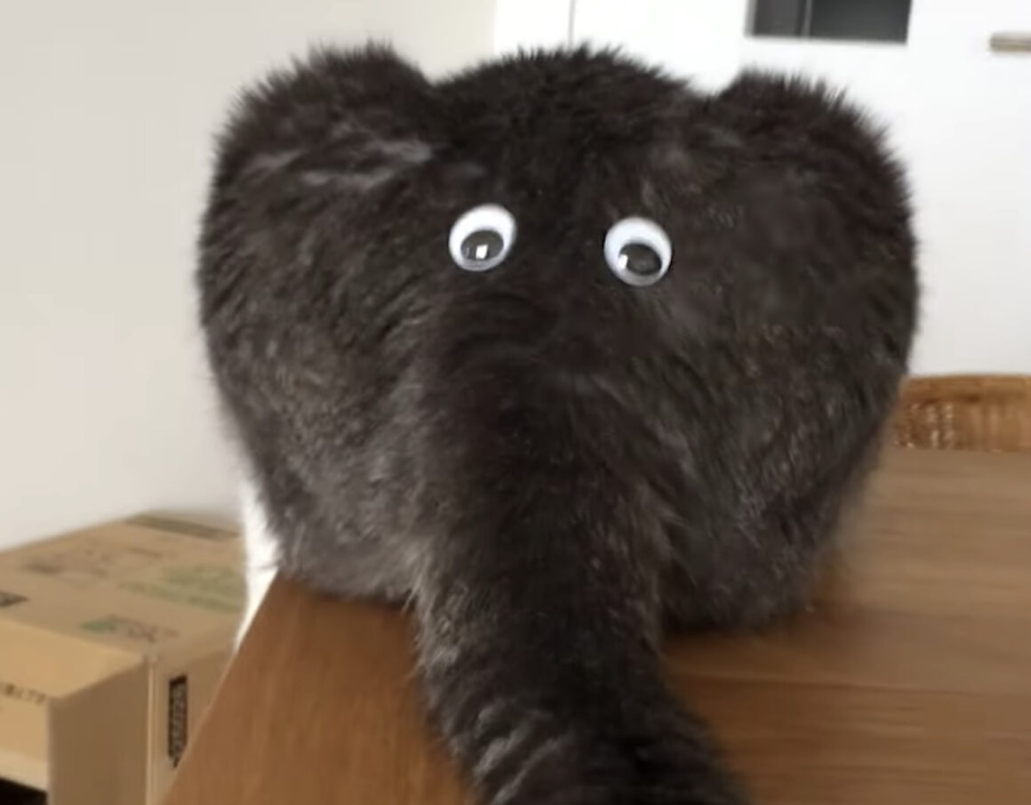 テーブルの上でくつろいでいる猫さん。 前から見ても横から見ても どこから見ても、 当然かわいい! そんな猫さんの姿を見ていて 何かに気づいた飼い主さん。 このもふもふした後ろ姿に おもちゃの目をつけてみたら、 あの動物にそっくりじゃない? 猫さん... -