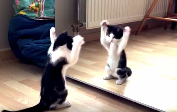 初めて鏡を見た子猫さん、 恐れることなく鏡の中の自分にアタックアタック! そして両手をあげて にゃごにゃごにゃご… ってなにそれ? 動きが可愛すぎるよ〜! [youtube https://www.youtube.com/watch?v=SlxdAJmeLcQ?rel=0&controls=0&s... -