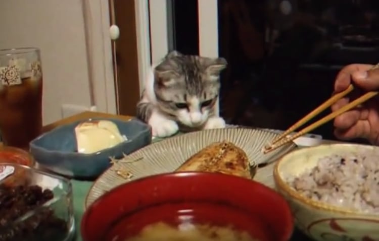 ちょっとだけ分けてください!アジの干物を狙う猫。