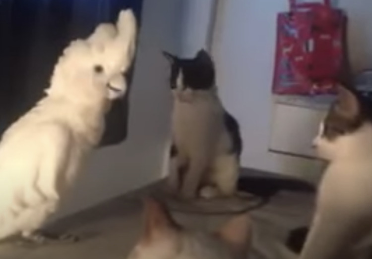 猫の鳴き真似を覚えたオウム。猫の集会に参加してみたら、みんなの反応が…