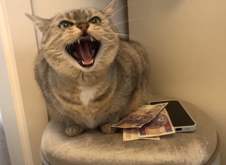 ポケットの中に入っていたものを ポンっとサイドチェアに置いた飼い主さん。 お金と、スマートフォン!! どちらも大事なものですね!! しばらくすると、猫さんがやってきて さりげなく前足でお金を抑えて… もしかしてお金を守ってくれてる? ようやく猫... -