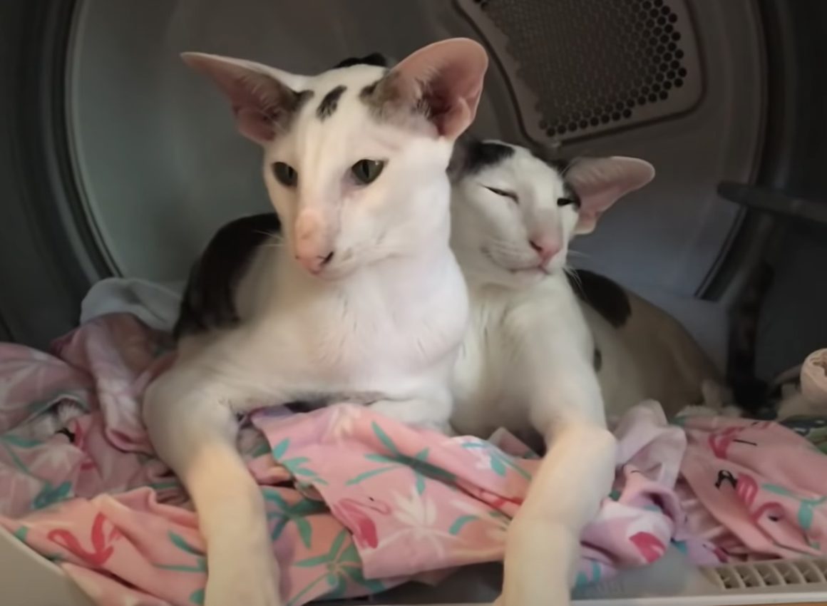 「暖かい場所発見♪」乾燥機をサウナがわりにする猫。
