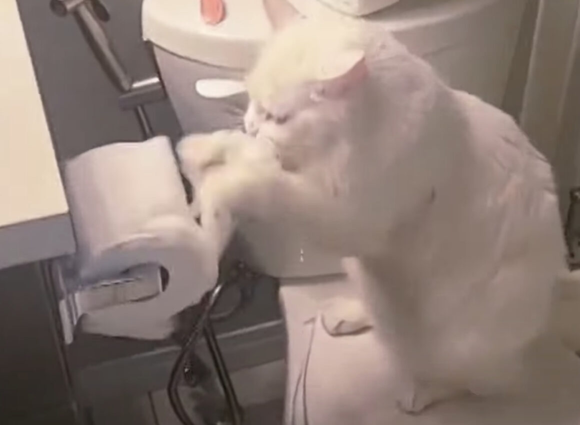 新記録がだせそうニャ!トイレットペーパーを無心でカラカラする猫。