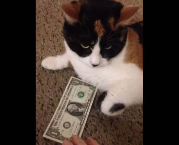 猫さんの目の前に、 ポツンと置かれたドル札。 返して欲しいんだけど... なかなか鋭い目で睨んできます。 そーっと手を伸ばすと、ダメっと猫パンチ! しつこく取り返そうとすると、 噛みつかれちゃいました...。 そのお金、猫さんはどうするつもりなんでし... -