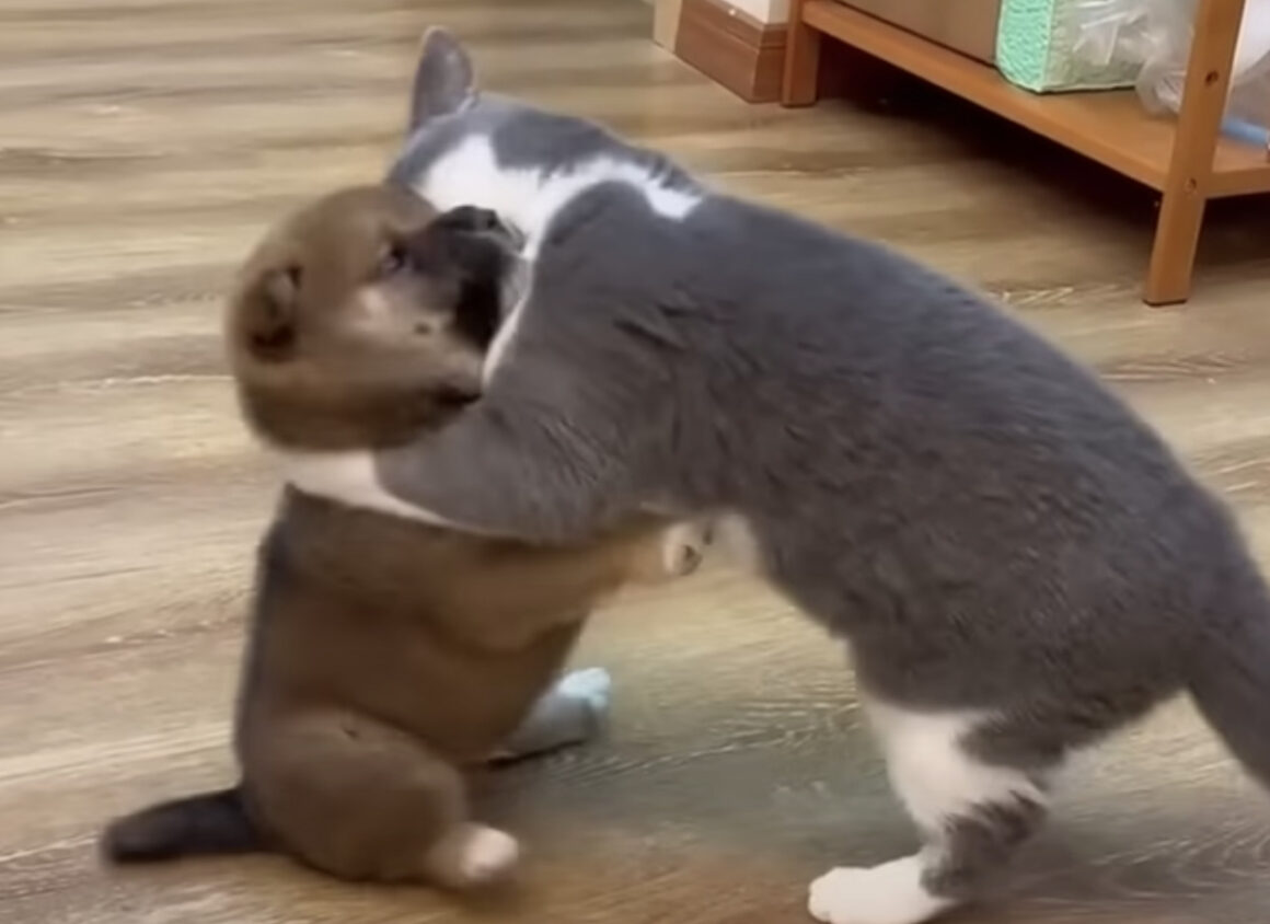子犬が大きくなるまで待ってあげて! 早く遊びたくてしょうがない猫。