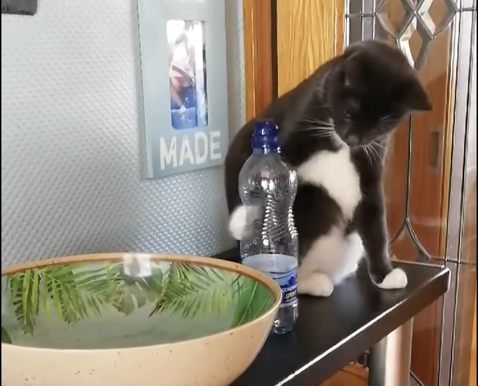 飲み終わって空になったペットボトルを いつまでも捨てずに置いている飼い主さん。 猫さんの隣に、ペットボトルを置いてみると... 片手でバシッと叩かれて 床に叩き落とされちゃいました。 何度も何度も、隣に置こうとしても 無言で猫さんに叩き落とされま... -