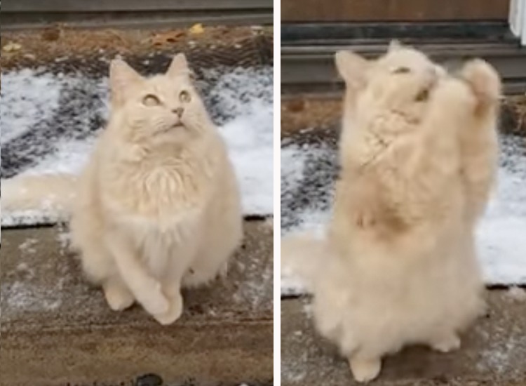 降る雪をキャッチしたい!ムキになっている猫さんが可愛い。