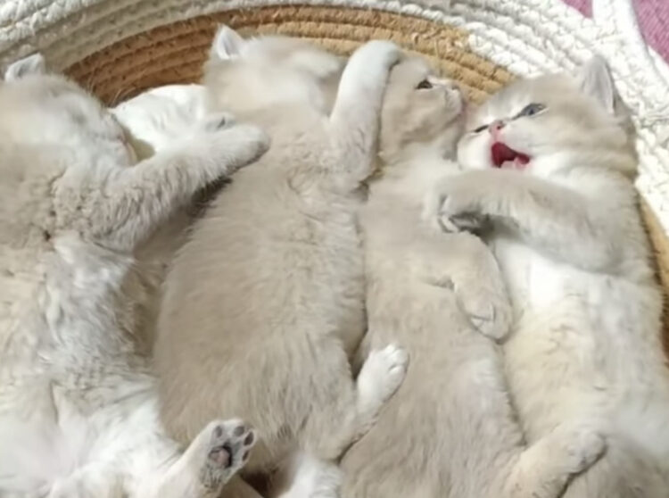 仲良く一つのベッドに入って 眠る準備をしている4匹の子猫さん。 もう今日は充分過ぎるほど遊んだので 静かにおやすみなさい。。。 …のはずが! 左側の2匹の子猫さんはすぐに眠りに落ちましたが 右側の子猫さんたちは、 まだまだ眠たくないのか お互いを甘... -