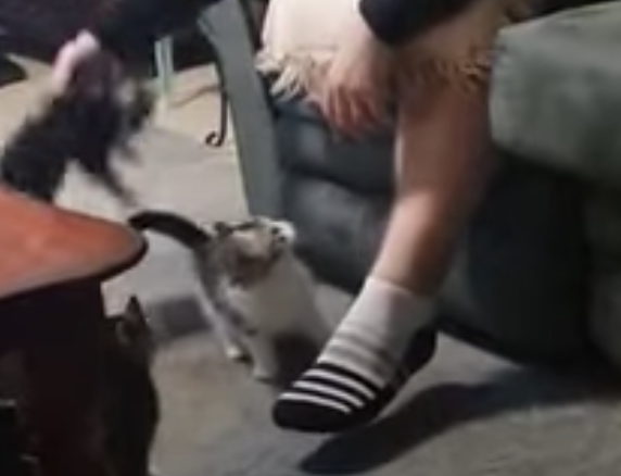何度追い払ってもやってくる!子猫に遊ばれている人間。