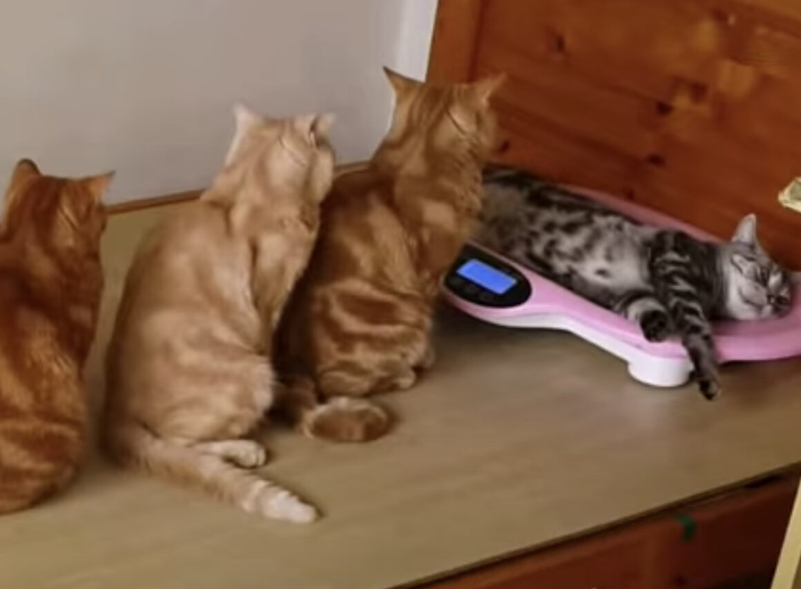 お行儀よく並んで身体測定? 体重計待ちの猫さんたちが可愛らしい!