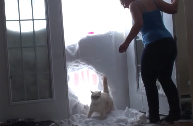 雪の日にお散歩に出かけた猫さん。 遊んでいる間に玄関の前には雪が積もっていて、飼い主さんは玄関の場所を教えるために雪の上にエサのお皿を。 すると、玄関に気づいた猫さんは... ズドーーーン!とすごい勢いで猫の壁をつきやぶってのご帰宅。 これには... -