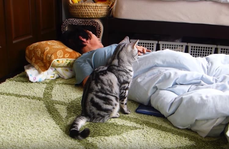 ばあちゃん大丈夫? あまりにも心配で看病する猫。
