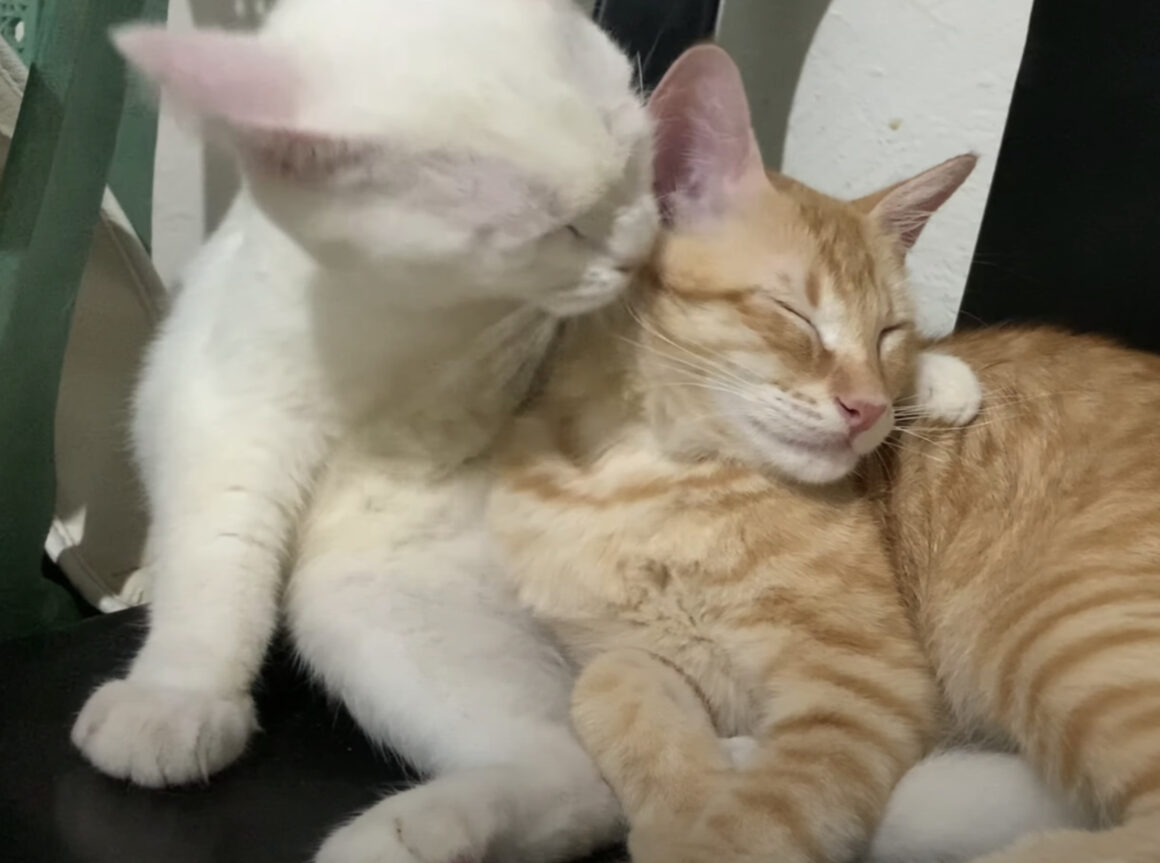 イスの上でくつろいでいる、 白猫さんと茶トラ猫さん。 このふたり、とっても仲良しで いっつもお互いを毛繕いしているんだそう♪ 猫さん同士の毛繕いは 「アログルーミング」とも呼ばれていて お互いに愛情を表現する方法の1つ♪ 白猫さんに完全に身を委ね... -