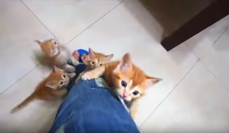 ニーニーニー!と鳴く子猫さん。 1匹が飼い主さんの足を登り始めると、 みんな真似っこして。みんなで登ってきちゃった。 抱っこして欲しいのかな? お腹が空いちゃったのかな? 可愛すぎる大運動会なのでした。 出典:ThePlayground777 -
