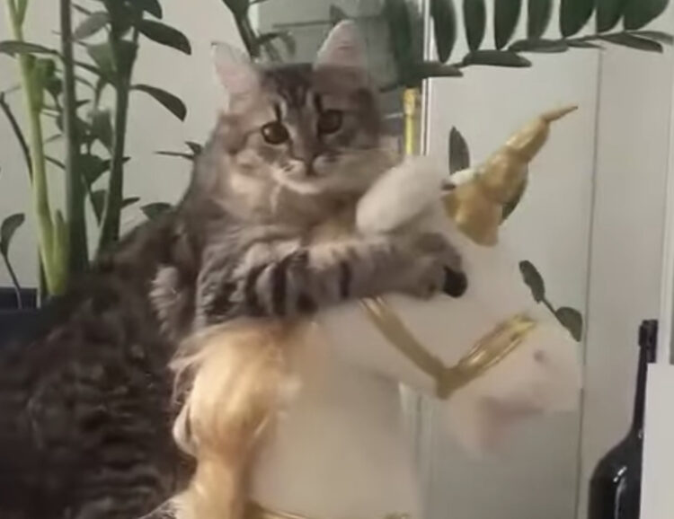ユニコーンに乗って♪ ゆらゆら遊ぶ猫ちゃん。
