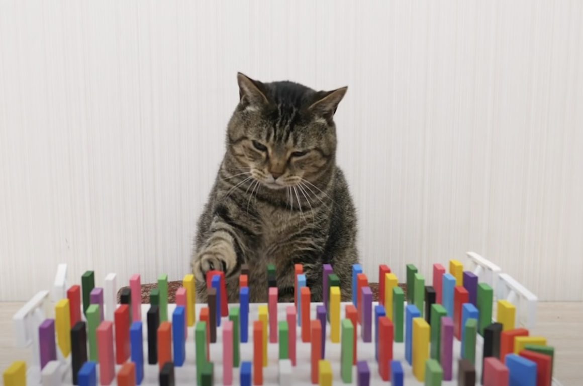 ねこも参加しながらドミノをしてみたら、とっても楽しい映像になった♪
