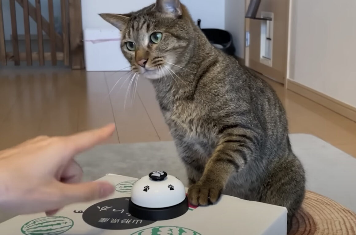 やる気に満ち溢れた表情で 飼い主さんを見つめる猫のこぱん君。 この日は呼び鈴をチーン!と鳴らす練習。 猫さんの手元にベルを置いて いざ、飼い主さんが指示を出すと、 あぁっ! おしい! お手になっちゃう!! お手ができるだけでも充分すごいのですが ... -