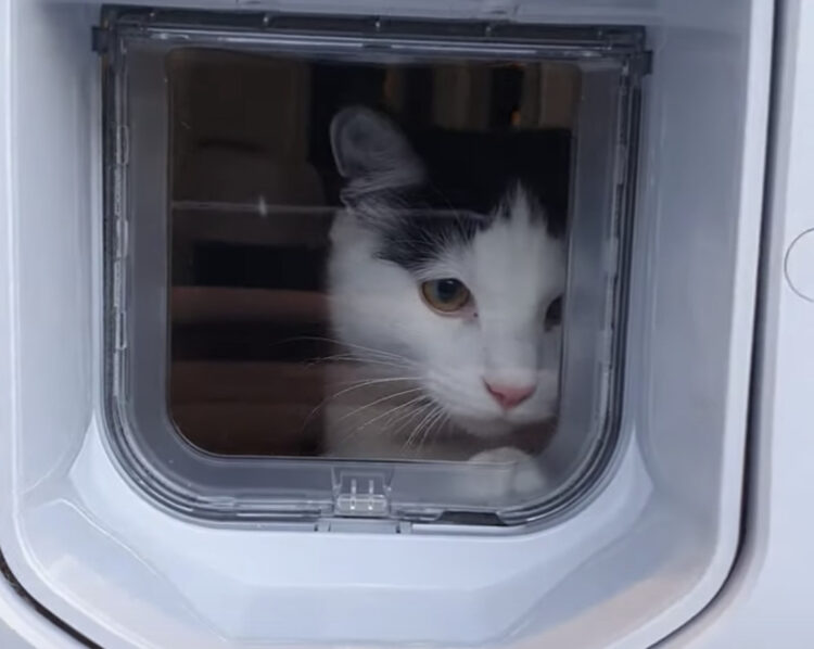 猫「わぁ! 外の世界が見える!」はじめてのペット用ドアに挑戦。