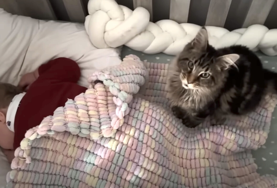 とても人懐っこくって いつもは赤ちゃんのそばにいて 子守を手伝ってくれている猫のChaseさん。 この日は赤ちゃんを優しく包み込むように そっと手を置いて… 寝かしつけをしていたのかな? 赤ちゃんの声や動きにびっくりして 近くでは寝るのを嫌がる猫さん... -