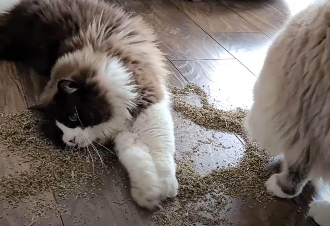 「例の粉」がこんなにたくさん!!大興奮する猫さんたち。