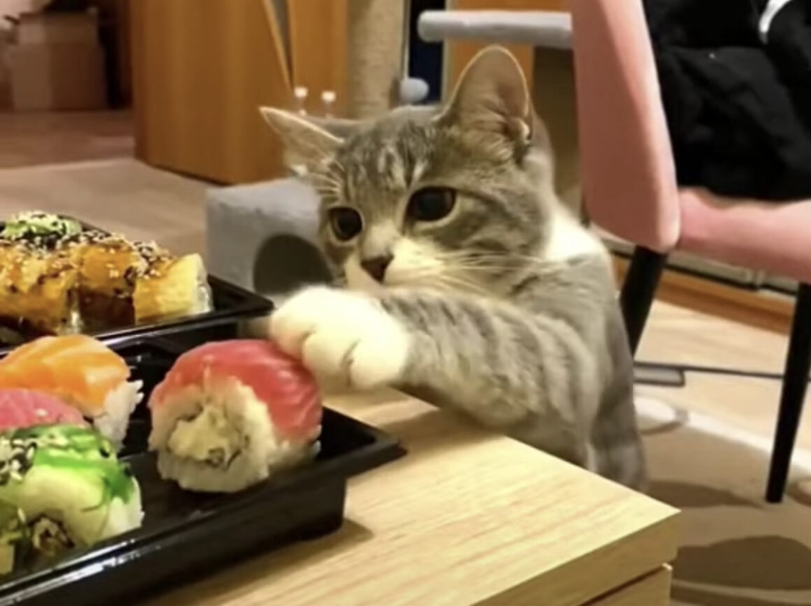 食いしん坊のこちらの猫さん。 飼い主さんのお昼ご飯を つまみ食いしようと狙っているみたい! 狙っているのはお寿司!! 猫さんが食べられないものもあるので それを獲っても美味しくないんじゃ? と、猫さんの動きを見ていると… とっても器用にマグロの... -