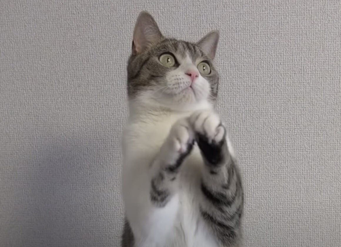 おねだりポーズ炸裂!「ちょうだい」する猫が可愛すぎ。