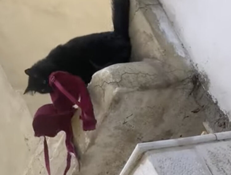 それ誰の!? 黒猫さんが運んでいる物にびっくり。