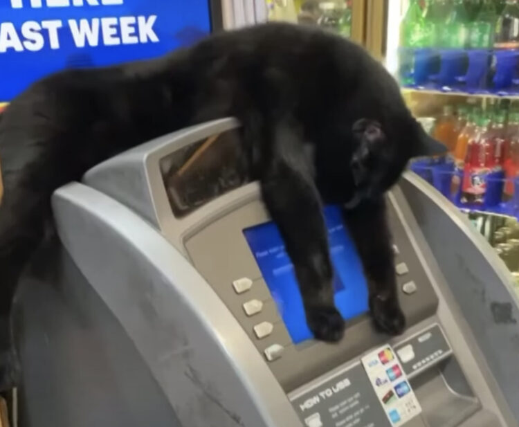 思わず「海外らしいなぁ」と 声がでそうな面白い黒猫さんがいました! 猫はあったかい場所を見つけるのが得意な動物。 この黒猫さんが見つけたあったかい場所は、 ATMの上!しかもモニターにも手を伸ばして 思いっきり画面を隠しちゃってます。 眠っている... -