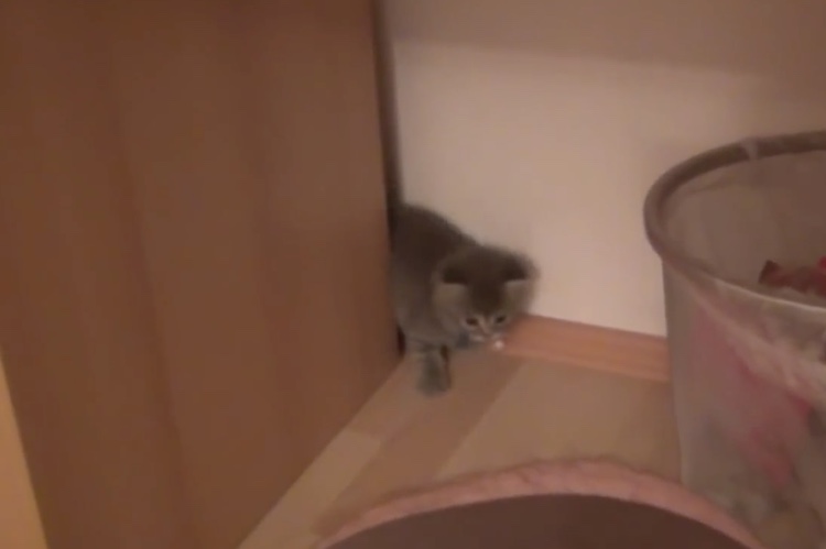 生後まだ7週間という赤ちゃん子猫さん。 まだ世界に慣れてなさすぎて、隙間に隠れてはひょこっと顔を出す仕草を繰り返します。 それがまるでいないないばあのよう。笑 途中、しっぽだけ出ちゃうとこなんかは悶絶間違いなしです。