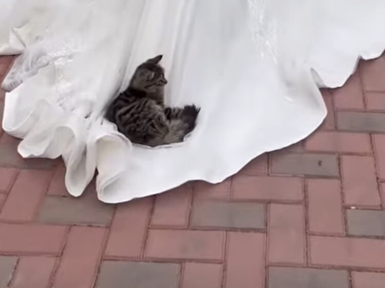 花嫁さんより目立っちゃダメ(笑) ドレスの上に子猫が…