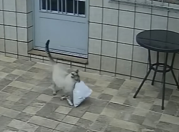 この子賢すぎ!! 置き配の荷物を部屋に運んでくれる猫。