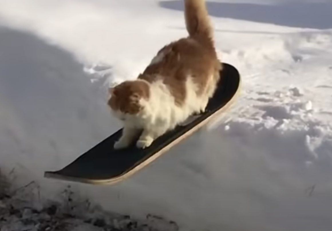 アウトドア派な猫さん、スノースケーターになって銀世界を駆け回る!
