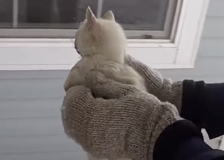 雪の中に埋まっていた子猫、カチコチに凍ってしまい…