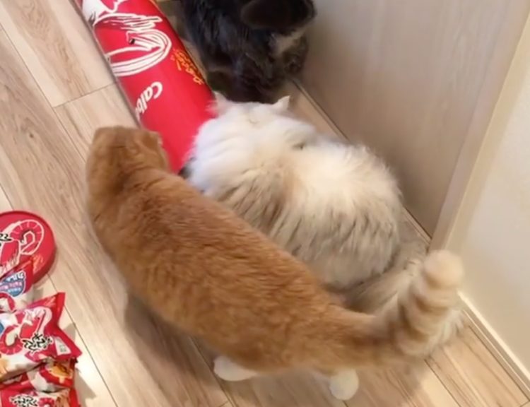 猫さんの体の柔らかさは 人の想像を超えることもあり 驚かされることも多いです。 こちらのお宅の猫さんも 驚きの体の柔らかさを持っていて... 床に転がっているお菓子の筒が気になる猫さん。 中をのぞきこんで、モゾモゾ。 ふわっふわの体で、筒より大き... -