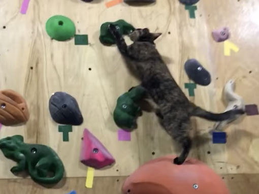 趣味として始めている人も多いボルダリング。 体力とバランス感覚がいるスポーツですが、 今回挑戦しているのは...猫さん! ホールドに次から次へと移動して、 どんどん登っていきます。 途中ヒヤッとする場面もありましたが、 さすがの身のこなし! ニャ...