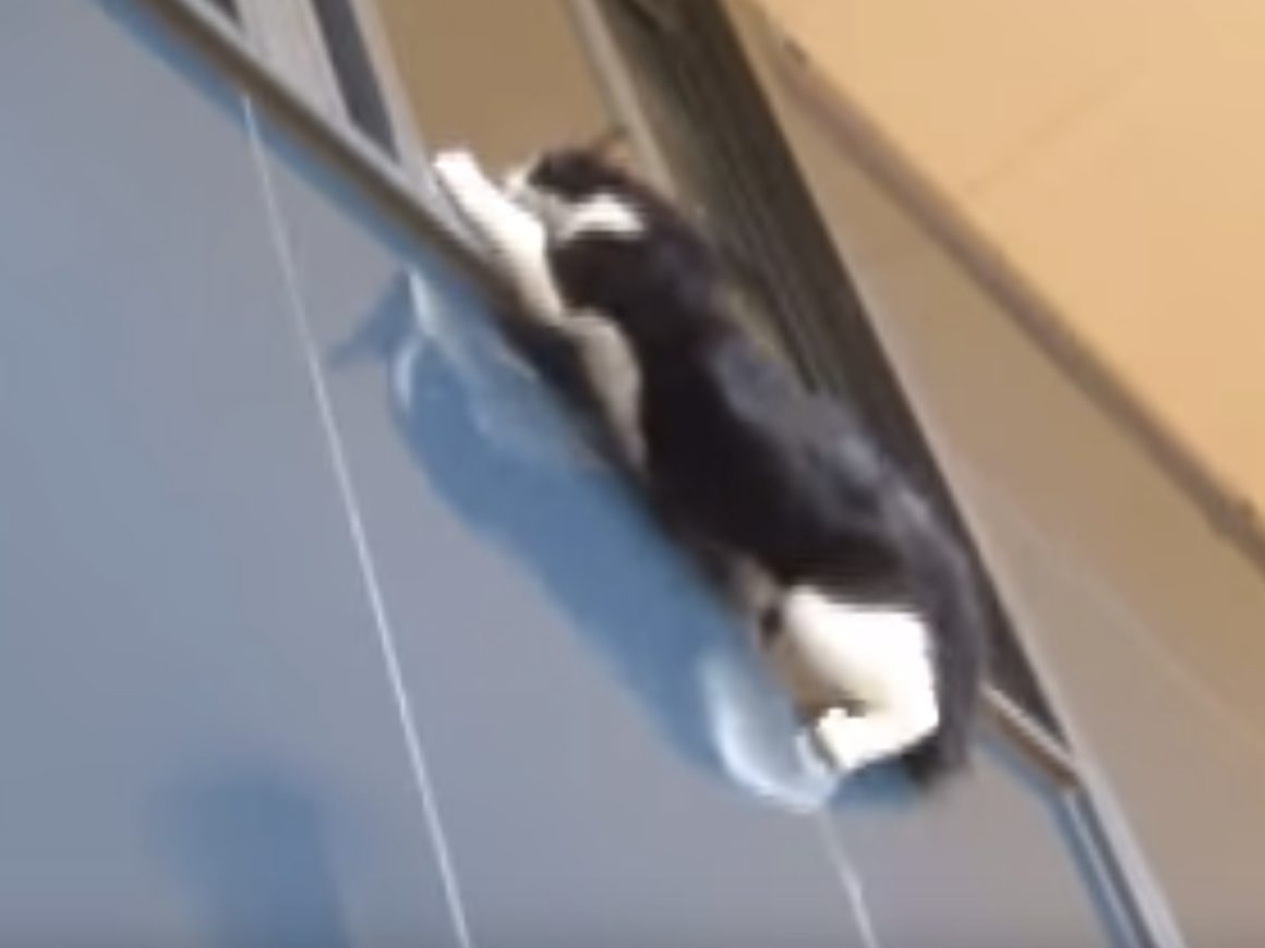 海外でスパイダーマンのような猫さんを発見。 高いビルの窓から顔を出して、 隣の窓まで移動したい様子。 足場がほとんど無いから、 やっぱりすぐに足を踏み外しちゃった! 前足でなんとかしがみついているものの、 いつ落ちてしまうかとヒヤヒヤ。 最後は... -
