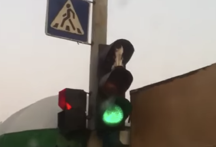 あったかい場所見つけたニャ! 信号をよ〜く見ると猫が…