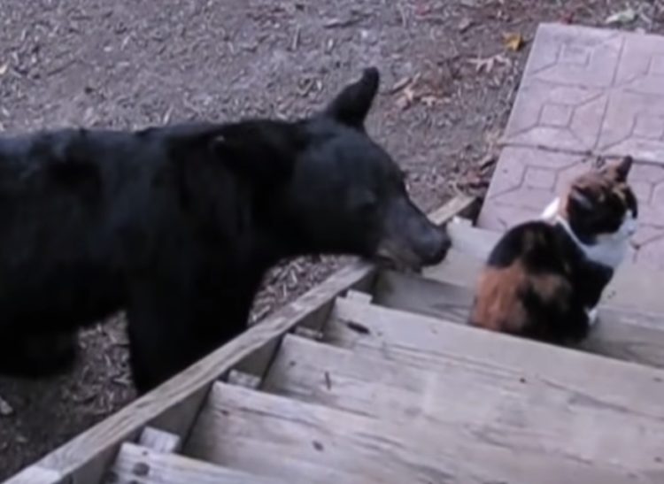 猫ピンチ! 背後からやってきたクマに気づいていない…