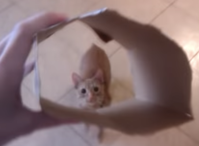まばたき禁止!猫さんに箱を見せると、驚きの行動に。