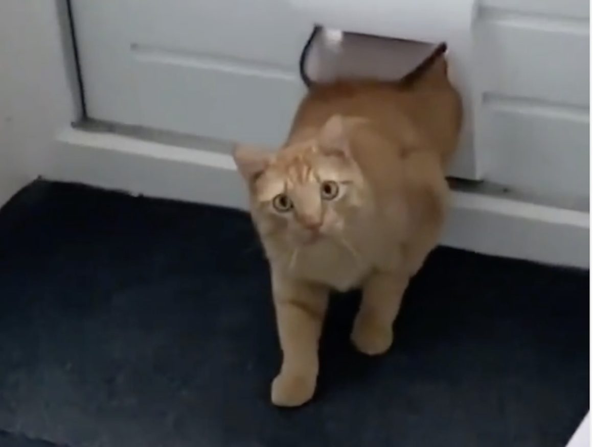 「あ、家を間違えました」ペット用ドアから知らない猫が登場!