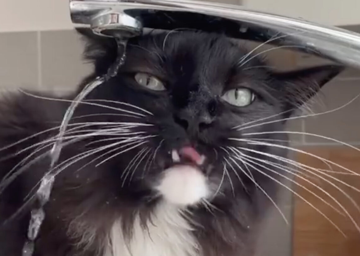 水分補給とシャワーを一緒に済ませちゃう猫さんが可愛すぎ。