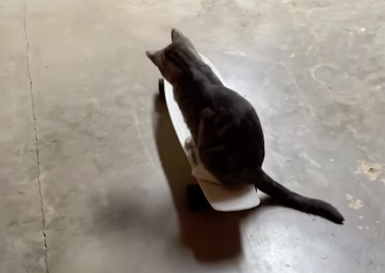スケボー楽しい♪ 自主練していた子猫、ついに自分で乗れるように!